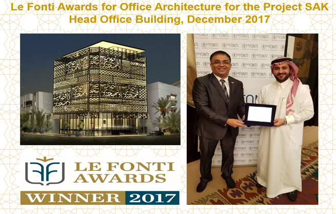 منح مكتب (SAK) جائزة من شركة (سيتى سكيب) 2012 – تصاميم الفلل في مشروع الفريدة. منح مكتب (SAK) جائزة من شركة (سيتى سكيب) 2012 – أفضل تصميم معماري إسلامي لمشروع مدارس الأندلس.