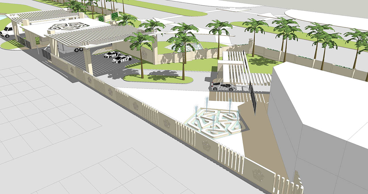 The maximum building height on site is 15m (or 3 floors), meeting KAEC’s guidelines. The landscaped area is 11%, surpassing the minimum 10% guideline. The remaining 82% of the site is dedicated to the vehicle fleet and operations, including circulation.