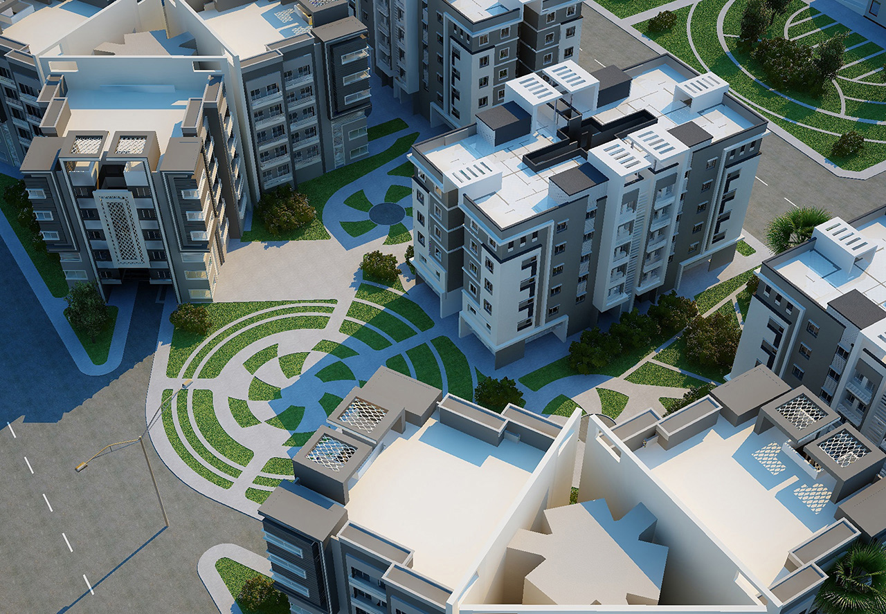 The total number of buildings in this project is 28 nos., and it consists of 560 apartment units with other facilities.