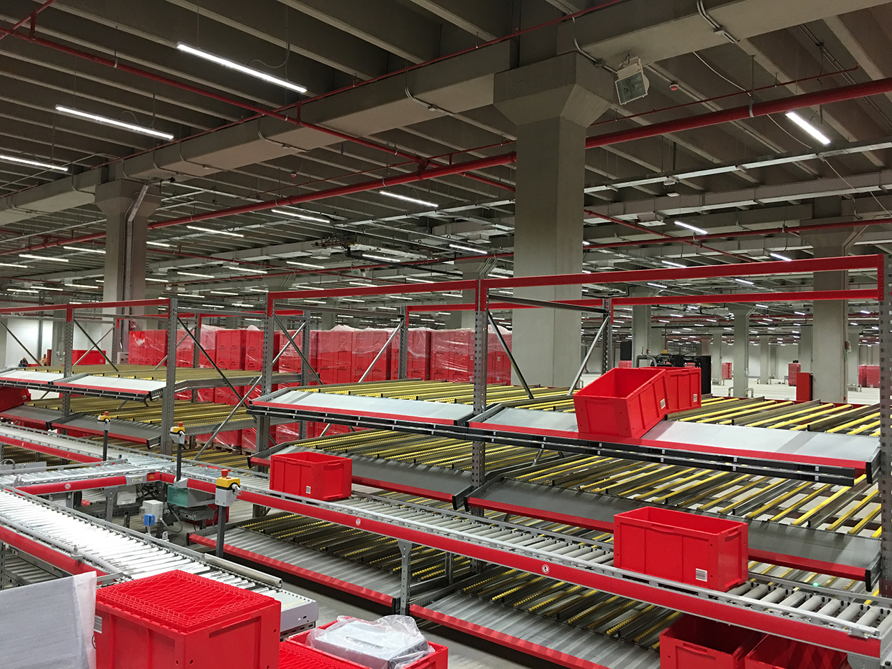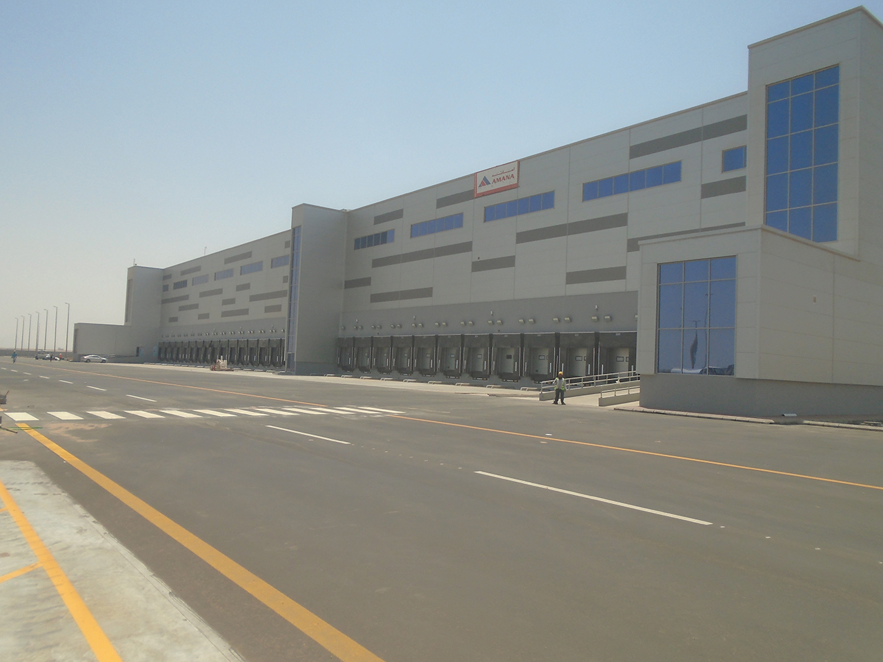 FLOW facility; an automated warehousing, comprises of steel structures warehouses; mainly HBW Building of galvanized steel by rack 10 lanes, retrieval machines (SRM) and 5 aisle switching (Length approx. 186,100 mm, Width approx. 40,750 mm& Height approx. 34,450mm), Mini load Area (Length approx. 59,000 mm, Width approx. 43,650 mm& Height approx. 20,000 mm), Picking Area (Length approx. 127,100 mm, Width approx. 78,750 mm& Height approx. 20,000 mm), Order Consolidation& Shipping Area (Length approx. 141,600 mm, Width approx. 60,500 mm& Height approx. 15,500 – 20,000 mm), Services Utilities and Site Development including hard and soft capes and boundary walls.